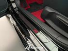 - volante in pelle scamosciata nera e cuciture rosse