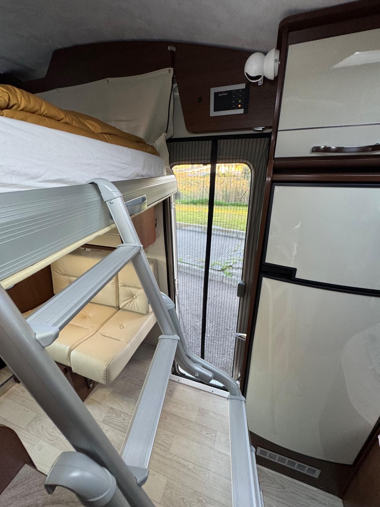 Letto alla francese posteriore, e un secondo letto matrimoniale basculante sopra la dinette, che non ostruisce la porta, bellissimo bagno dove troviamo la bellissima doccia separata! Il mezzo è perfetto, gommato e tagliandato a luglio 2024, revisione fino a settembre 2026, distribuzione effettuata ad agosto 2023.