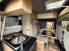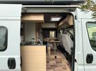Finestre a compasso oscurate a filo Carrozzeria, riconfigurazione cabina con due posti viaggio dotati di piastre girevoli, due posti viaggio con cinture poggia testa ed attacchi ISofix nella Dinette, isolamento totale con Reimo x-trem isolator, pavimento con piano di calpestio in laminato, rivestimento tetto in eco pelle, un pannello solare 100 W ultra flat, una batteria AG M 100 ah, pannello di controllo CBE, caricabatterie rete 230 V switching CBE, caricabatterie DC-DC Carbest 16A, barre LED ad incasso sotto i pensili. Attacco a colonnina 230 V per la ricarica delle batterie, 2 prese 220 V una in zona cucina e una in zona giorno frontale, 5 prese USB, due in zona dinette, una in zona cucina e due in zona giorno frontale, luci di lettura flessibili, zona letto.