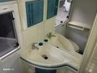 Dotato di doccia separata (una rarità per l'epoca su quelle dimensioni) e finiture di pregio che ricordano l'ambiente domestico, con WC, lavabo con specchio, e vari mobili contenitori.