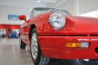 Alfa Romeo Spider 1.6, ultima vettura del Biscione a montare un motore alimentato a carburatori. Rosso Alfa con interni beige, prime targhe bianche con provincia, doppie chiavi, servosterzo, autoradio, copricapote in tinta e introvabile treno di 5 CERCHI IN LEGA da 15 pollici originali del modello 2.0i.