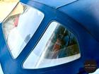 Argento metallizzato con capote blu a contrasto. Interni anch’essi blu in materiale misto pelle e tessuto.