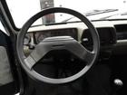 Seats and panels in gray and green herringbone fabric. Driver's side exterior mirror.