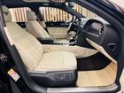 Interni con pacchetto Mulliner di serie: pelle trapuntata a diamante sui sedili e sui pannelli porta, loghi Bentley ricamati, pedaliera in alluminio forato e pomello del cambio in metallo godronato.