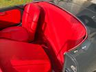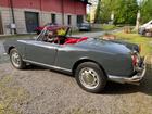 Magnifica Giulia Spider color grigio topo con interni rossi e capottina nera.