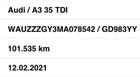 AUDI A3 35 TDI 150CV , EURO 6 , cambio automatico e sequenziale , FEBBRAIO 2021 , con 101628 km