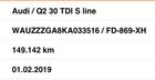 AUDI Q2 30TDI cc1.6 TDI 116CV DSG7 SLINE , FEBBRAIO 20219 , EURO 6 , con 149142 km certificati , cambio automatico e sequenziale
