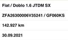 FIAT DOBLO' cc1.6MJT 105 CV MJT2 , SX PROFESSIONAL 5 posti ,BIANCO , EURO 6D , SETTEMBRE 2021 con142927 km , cambio manuale a 6 marce