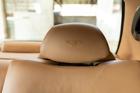 - Motivi della "B" alata ricamati sui poggiatesta dei rivestimenti in pelle traforata bicolore.